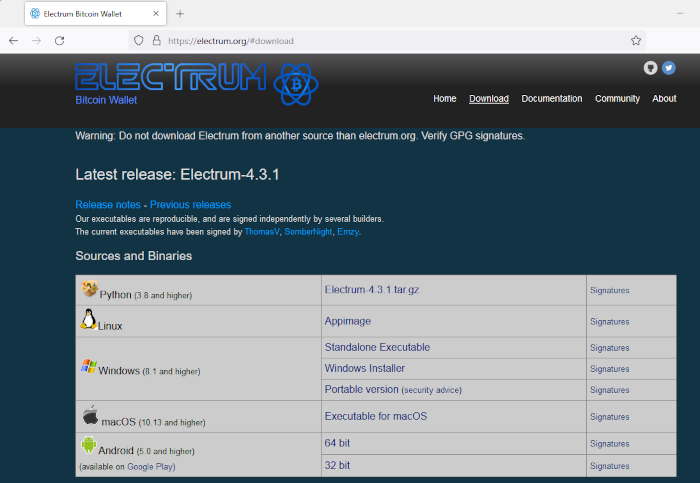 Warning: Do not download Electrum from another source than electrum.org. Verify GPG signatures.