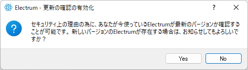 - 更新確認のメッセージが表示されるので、「Yes」をクリックします。