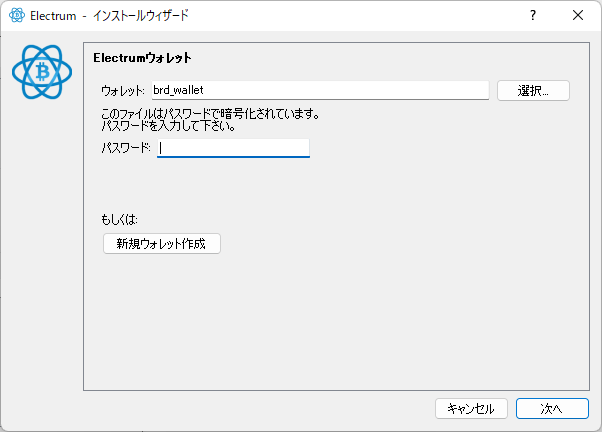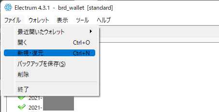 Electrum Bitcoin Wallet に BRD 復元フレーズ設定し復元する†