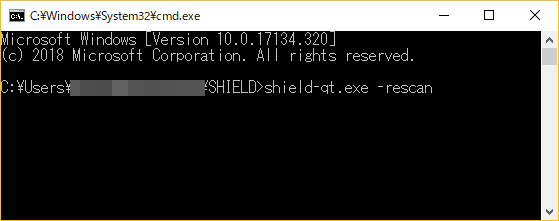 以下の手順で-rescanオプションをつけてshield-qt.exeを起動することができます。