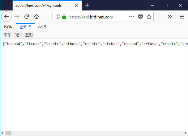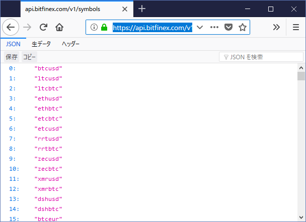 以下、URLでBitfinexの通貨ペアシンボル一覧を取得できます。