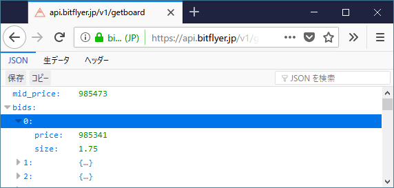 PowerShellを使ってbitFlyerの板情報APIの使用例を以下に記します。