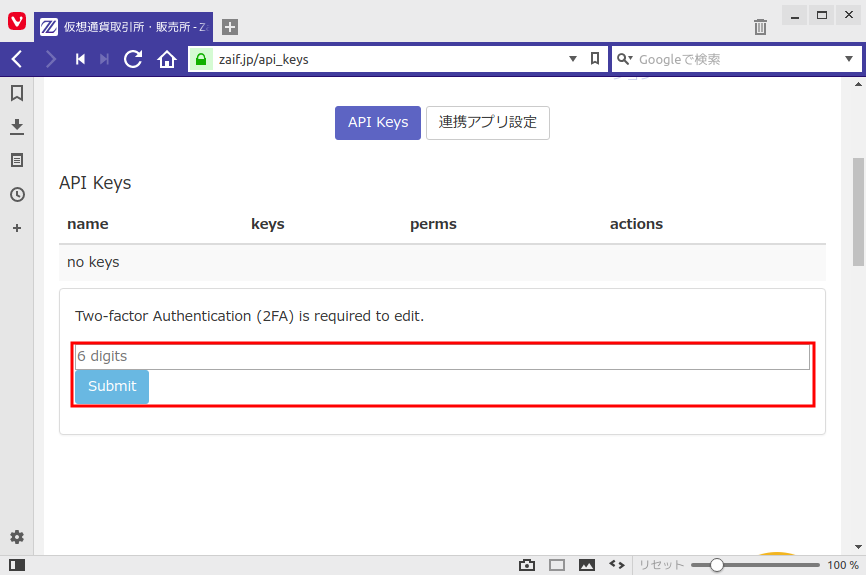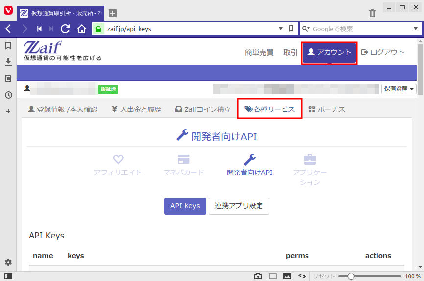 以下の手順でZaif のAPIキーを生成することができます。